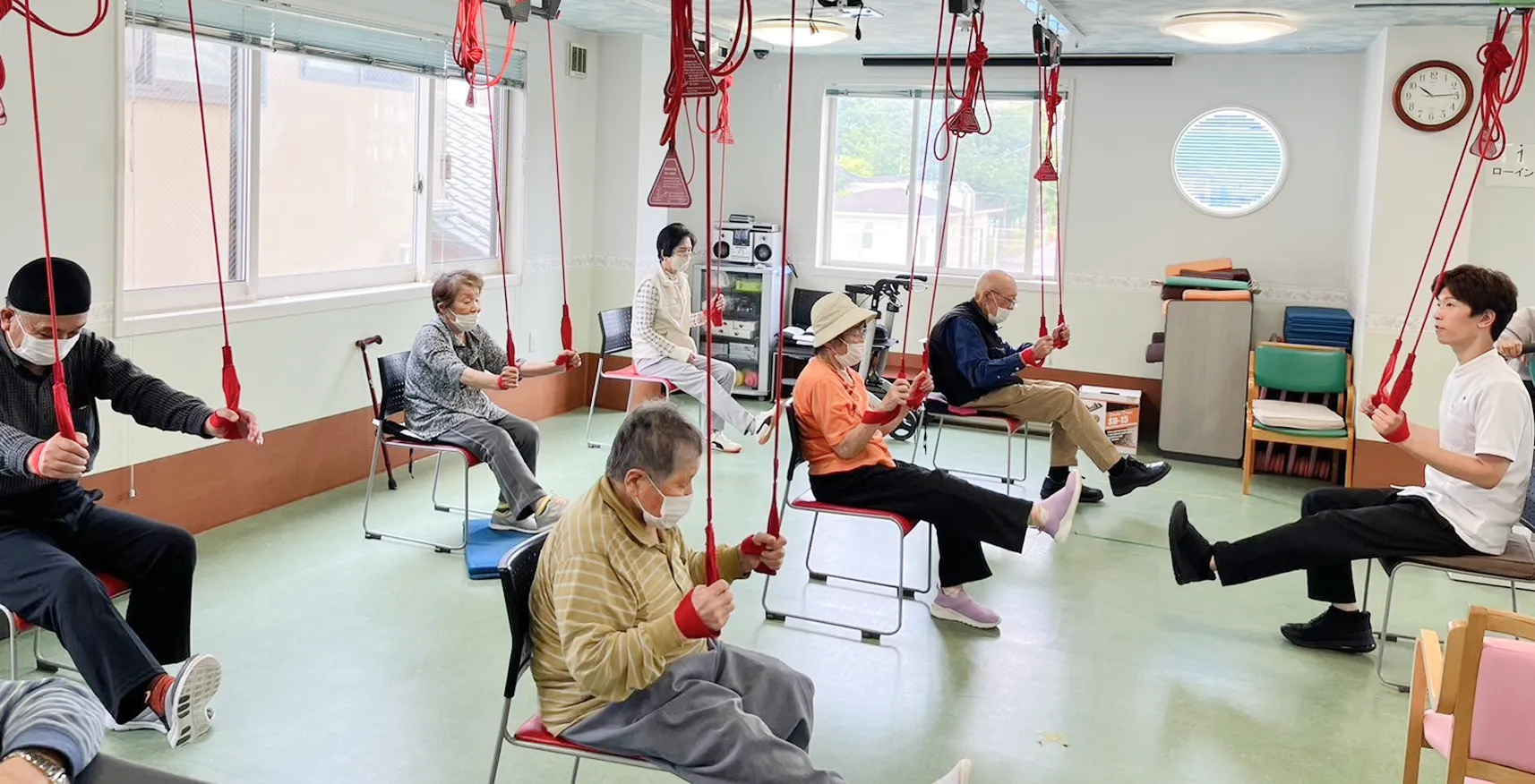 スリング体操は、吊り下げた布(スリング)を使って行う運動で、全身の筋力や柔軟性を高め、バランスを改善します。高齢者の転倒予防や関節の可動域向上に効果的です。