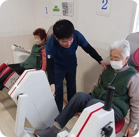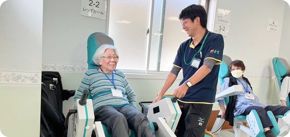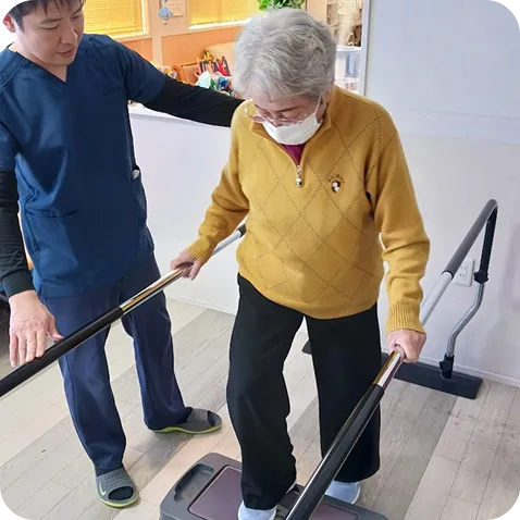 専用マシンを使い、安全に筋力や持久力を向上させ訓練です。負荷を調整でき、歩行の安定や転倒予防、関節の可動域改善をサポートします。