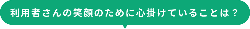 利用者のペースに合わせて、安心感を持ってもらえるように言葉遣いや態度など、人生の大先輩である利用者様の尊厳を大切にするように心がけています。