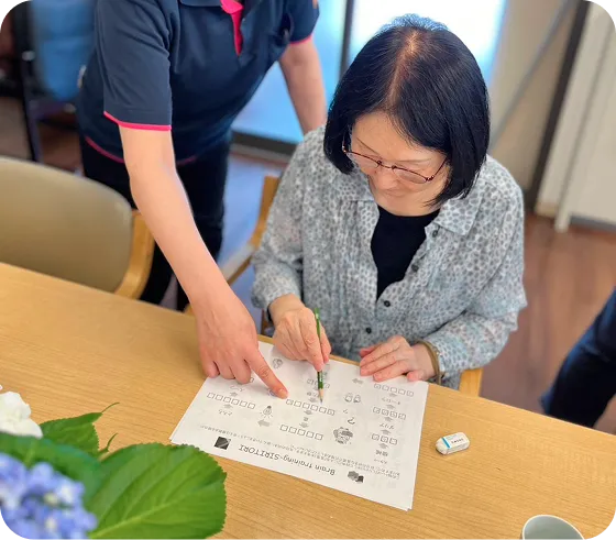 部屋も明るいので気持ちも明るく前向きになり、機能訓練や脳トレ、ティータイムを楽しみに通われている方がたくさんいます。