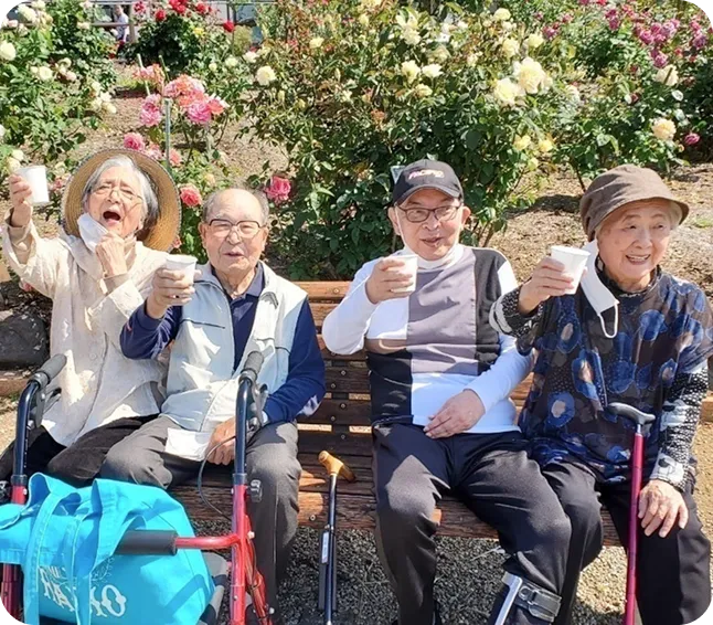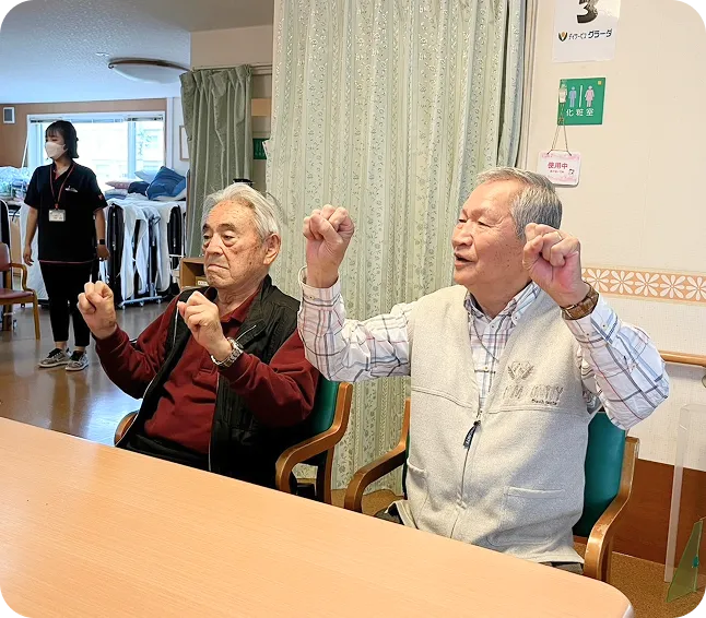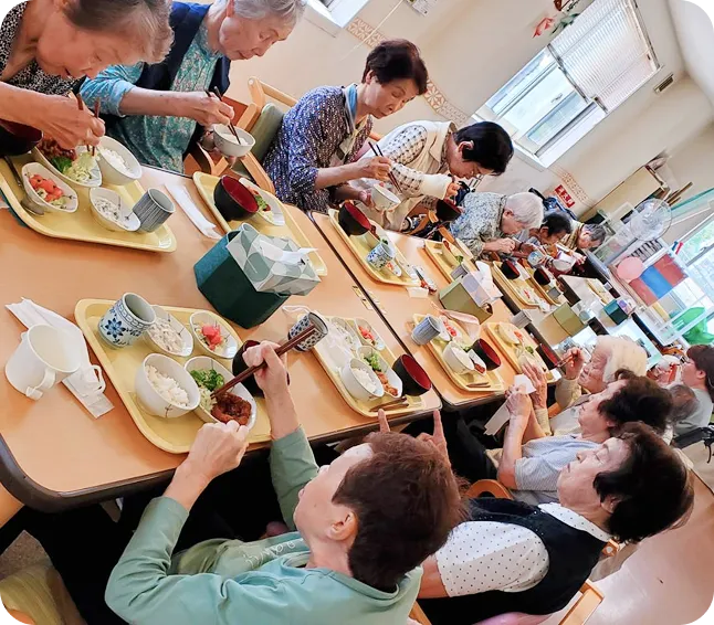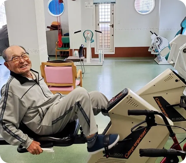 機能訓練はもちろん、美味しいと大好評の給食や毎日行われるレクリエーションなど、一日笑顔で過ごしていただけるスケジュールをご用意しています。